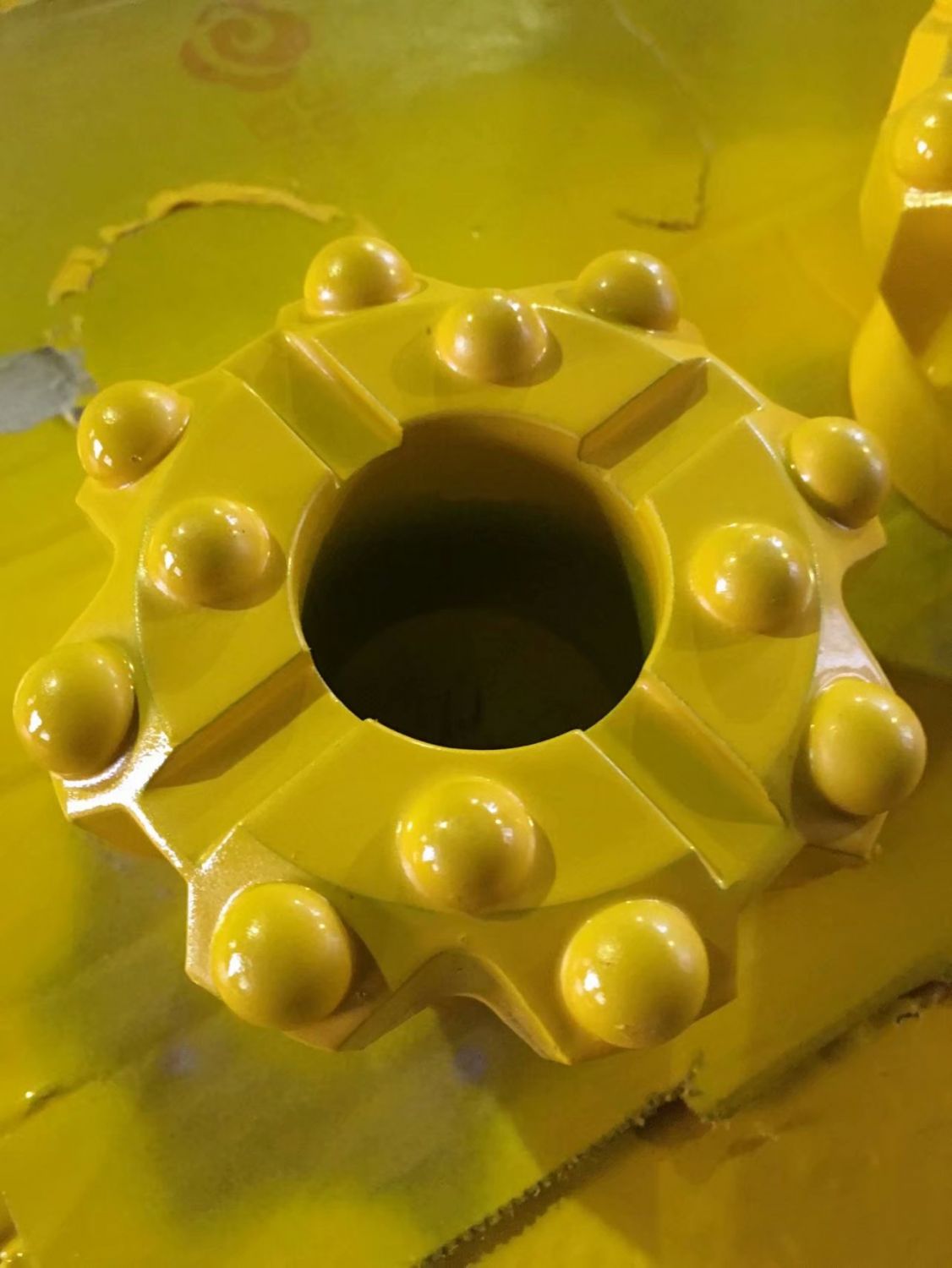 Button bits feature bit diameter, skirt length, skirt diameter, wall thickness, gauge clearance angle, face design, and button insert types. There are two types of skirts which are retrac and straightrac. The bit faces including recessed face as well as named drop center face, flat face, chisel face and dome face. The insert button type including hemispherical button which is abrasive and suited to hard ground, ballistic button which is suited to soft ground, parabolic button as well as named semi ballistic button which is mildly abrasive ground and suited to medium ground and conical button which is best suited for smaller diameter bits and suited to all non-abrasive ground. And for number of buttons, 3-6 buttons are inserted in 33mm-45mm bits in diameter. 4-6 buttons are inserted in 45mm-51mm bits in diameter. 6-10 buttons are inserted in larger 51mm bits in diameter.
